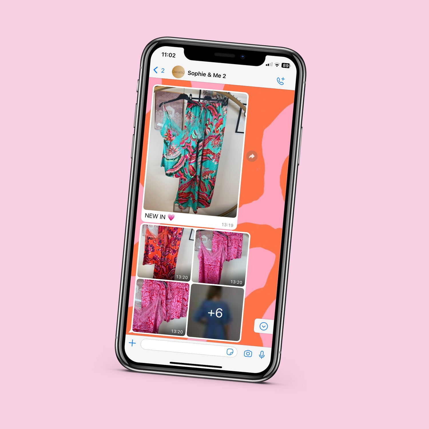 Wij werken met een Whatsapp-verzendlijst waarin wij dagelijks foto's van onze nieuwste collectie sturen. Wil jij toegevoegd worden? Sla één van onze telefoonnummers op (+31 6 28544718 / +31 6 48426463) op in jouw telefoon en stuur ons een Whatsappje met de naam van jouw winkel.